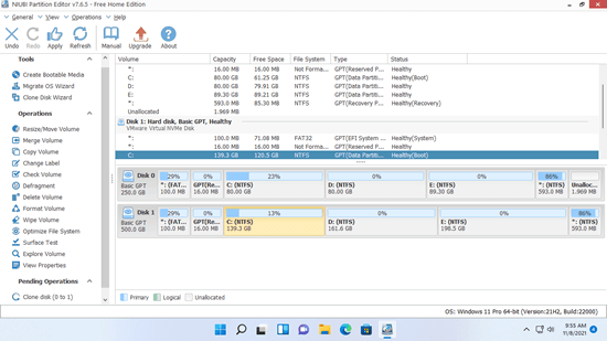 NIUBI Partition Editor uses the fast file system level copy method and it has advanced file-moving algorithm. It helps move and copy partition 30% to 300% faster than other similar tools. Besides clone disk partition in Windows 11, it has the ability to shrink, extend, move, merge, convert, defrag, wipe, hide partition, scan bad sectors, optimize file system, etc. It has free edition for Windows 11/10/8/7/Vista/XP home computer users.